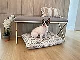 The sturdy frame of this elevated bed gives it an industrial feel and it is chew proof for all those chompers out there. Mort loves his elevated dog bed. It keeps him cool in the summer.